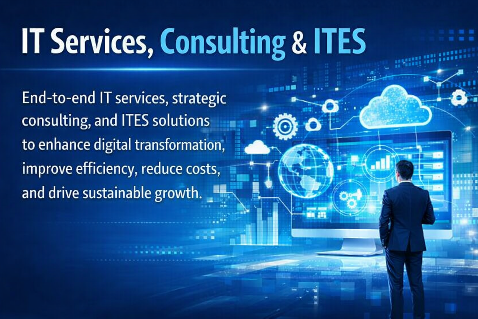 We provide end-to-end IT services, strategic consulting, and reliable ITES solutions to streamline operations, enhance digital transformation, improve efficiency, reduce costs, and accelerate sustainable business growth.